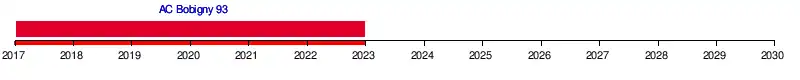 La couleur de l'axe indique la division dans laquelle évolue le club :