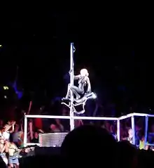 La piste Like a Virgin est aussi interprété lors des MTV Video Music Awards en 1984, où elle sort d'un gâteau géant habillée en robe de mariée, ornée de sa ceinture boy-toy, et d'un voile. L'apogée de sa performance osée se situe au moment où elle roule sur scène. Encore aujourd'hui, l'interprétation est considérée comme l'une des prestations les plus icôniques et meilleures dans l'histoire de MTV[a 43],[58]. Elle apparaît aussi au concert Live Aid en 1985, où elle chante Into the Groove et fait référence à ses apparitions nues dans le magazine Playboy en disant : « Je ne retire pas ma chemise aujourd'hui ! parce que la presse pourrait être contre moi pendant dix ans à partir de maintenant[a 44] ».