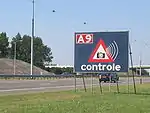 - Il existe diverses sections d'autoroute (et des rares sections d'autres routes) avec des contrôles de vitesse à moyenne. Des caméras font une photo à l'entrée et à la sortie d'un secteur. Après le passage, un système à reconnaissance automatique des immatriculations calcule la vitesse moyenne. Si le conducteur a roulé trop vite, une amende sera envoyée automatiquement. En 2015, ces 'contrôles de trajet' étaient responsables de presque 30 % des infractions, la majorité pour des petits excès de vitesse sur sections d'autoroute à 100 km/h, principalement l'A2 Amsterdam-Utrecht.