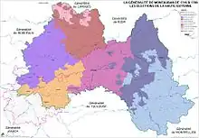 Les subdivisions de la généralité sont alors constituées par les élections, unités de base que permettent de distinguer les couleurs sur les cartes.