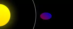 ![]() Plus près de la limite le corps est déformé par les forces de marée. |