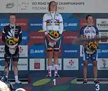Au championnat du monde de contre-la-montre, elle monte sur la troisième place du podium[32].