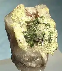 | Couleur | vert, vert jaunâtre ; vert pâle à jaune-vert en lumière transmise |
