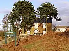 Cottage avec deux « désespoirs des singes », araucarias.