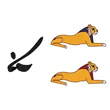 | C'est un idéogramme ou déterminatif (textes des pyramides) du terme rw : | « lion »[1], |