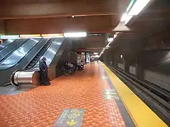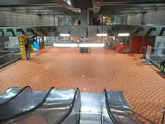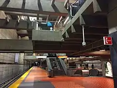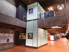 Équipées d'ascenseurs, les deux quais, supérieur et inférieur, et donc toutes les rames des lignes verte et orange sont accessibles aux personnes à la mobilité réduite[5], malgré tout, il faut en emprunter un autre pour rejoindre le niveau rue.