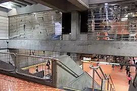 et l'œuvre Murales (1978), acier inoxydable, de Yves Roy, installation dans la mezzanine[13].