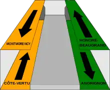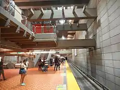 La station dispose d'une organisation spécifique à sa fonction de correspondance, elle est organisée avec deux stations superposées comportant chacune un quai central encadré par une voie de la ligne verte et une voie de la ligne orange pour faciliter le transfert des voyageurs d'une rame à l'autre. Cela signifie que par ligne, les deux voies sont situées l'une au-dessus de l'autre[4].