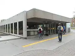 Cet édicule comporte plusieurs sorties vers la Rue Atwater. Une station de BIXI, un système de vélo en libre-service se trouve à la sortie de l'édicule.