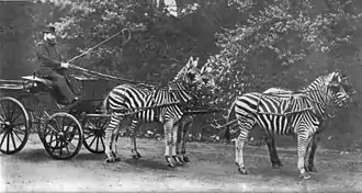Walter Rothschild a la réputation d'être un excentrique car il avait des kangourous dans son parc et il conduisait un chariot attelé de six zèbres à Buckingham Palace pour prouver que les zèbres pouvaient être apprivoisés[2].