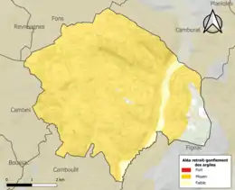 Le retrait-gonflement des sols argileux est susceptible d'engendrer des dommages importants aux bâtiments en cas d’alternance de périodes de sécheresse et de pluie. 90,8 % de la superficie communale est en aléa moyen ou fort (67,7 % au niveau départemental et 48,5 % au niveau national). Sur les 499 bâtiments dénombrés sur la commune en 2019, 429 sont en aléa moyen ou fort, soit 86 %, à comparer aux 72 % au niveau départemental et 54 % au niveau national. Une cartographie de l'exposition du territoire national au retrait gonflement des sols argileux est disponible sur le site du BRGM[22],[Carte 2].