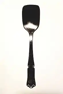 Cuillère à cuilleron presque plat, évoquant une petite pelle.