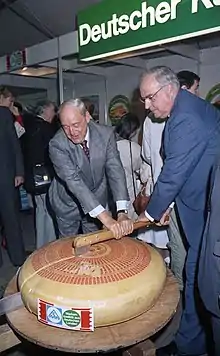 Fromages allemands, ici un Allgäuer Emmentaler, promotion par Helmut Kohl.