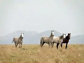 | Adaev | Адаевская лошадь | Selle, lait | Cheval des steppes | Kazakhstan | 1,32 à 1,44 m[4] | 28 949 (1990)[5] | ![]() |