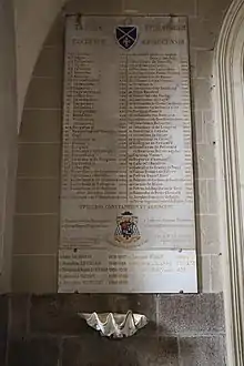 Plaque commémorative en la basilique Saint-Gervais d'Avranches listant les évêques de l'ancien diocèse.