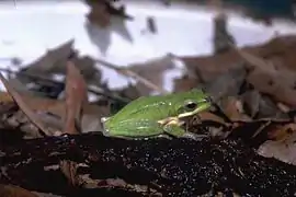 Cette grenouille est associée à une grande variété d'habitats côtiers, comme les marais, les lagunes, les barrages, les fossés et les bassins des bois, landes et terres agricoles. Elle vit dans les roseaux et autres plantes près ou loin de l'eau. Elle vit souvent dans les bananiers des régions du Nord de l'Australie et sont parfois emmenées avec les régimes de bananes à travers le pays.