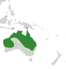 - dans les savanes du Sud de la Papouasie-Nouvelle-Guinée, y compris l'île de Daru (elle n'a pas été observée dans la partie indonésienne de la Nouvelle-Guinée) ;