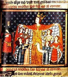 Moss. Roger Bernard lo Gros foc filhe de moss. Roger et de madona Eixemena ; et foc comte l'an mil cent quarante et quatre. Et foc marit de madona Cecilia, filh[a] de Ramon Trencabel, comte de Carcassona et vescomte de Veses, am conselh de moss. Ramon, comte de Barsalona, princip d'Arago, son cosin germa ; et aguec per dot lo castel de Santa Gavela, lo castel de Montaut, lo bosc de Borbona, la senhoria de d'Ausapans entro la ribieyra de l'Arieja, am XIm de molgare. L'an mil CLI, lo comtat de Carcasona era del homenatge del rey d'arago.[21]
