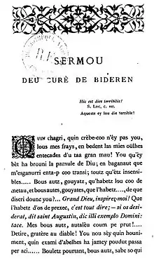 Les autres pièces sont plus ponctuelles, comme Lo Sermon deu Curé de Vidèren auquel font écho en languedocien Lo Sermon de Mossur Sistre du languedocien Jean-Baptiste Fabre et le Lou curat de Cucugnan du provençal Joseph Roumanille qu'Alphonse Daudet adaptera à la langue française en Le Curé de Cucugnan.