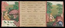 - Manuscrit pliant (en) (Samut khoi), sur "papier khoï" (Streblus asper (en), Arbre-Khoï, arbre à brosses à dents, Moraceae)