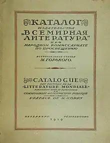 - (ru) Cet article est partiellement ou en totalité issu de l’article de Wikipédia en russe intitulé « Всемирная литература (издательство) » (voir la liste des auteurs).