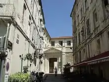 Façade du Temple Saint-Martial d'Avignon, ancien palais de la Reine Jeanne et Livrée cardinalice d'Audrouin de la Roche