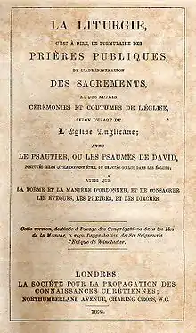 Une traduction française, publiée sous le titre Livre des prières publiques, fut réalisée par le prêtre jersiais Jean Le Vavasseur dit Durel, qui devint doyen de Windsor, et approuvée par Charles II d'Angleterre le . Cette version fut destinée à l'usage des églises paroissiales des îles de la Manche et de l'Église française de la Savoie. Selon les premiers mots de la préface :