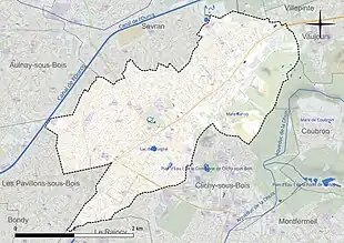 La ville est bordée à l’Ouest par le canal de l’Ourcq et à l’Est par les coteaux de l’Aulnoye et le plateau de Clichy-sous-Bois vers Montfermeil et est située sur l’ex-RN3 qui relie Paris par la porte de Pantin à Meaux, elle donc est la première commune en agglomération que l’on rencontre en venant de l’Est francilien[PLU 1].
