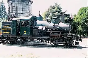 - Roaring Camp Railroads à Felton, Californie, utilise l'ex Roaring Camp & Big Trees Narrow Gauge RR #2 (numéro de série 1401).