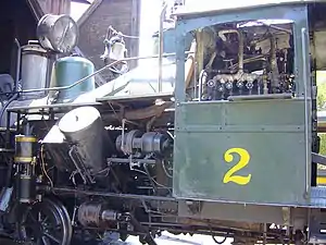 Les locomotives Heisler sont la dernière variante des trois principaux types de locomotive à vapeur à engrenages. Charles L. Heisler dépose un brevet de conception en 1892, à la suite de la construction d'un prototype en 1891[1]. Un peu similaires aux Climax, les Heisler présentent deux cylindres inclinés vers l'intérieur du châssis avec un angle de 45 degrés ressemblant aux moteurs V-twin. La puissance est ensuite transmise par un arbre d'entraînement longitudinal passant sous le châssis et alimentant chacun des bogies par des engrenages coniques protégés par un carter.