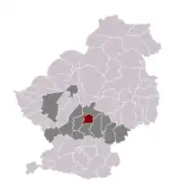 L'occupation des sols de la commune, telle qu'elle ressort de la base de données européenne d’occupation biophysique des sols Corine Land Cover (CLC), est marquée par l'importance des territoires agricoles (59,4 % en 2018), néanmoins en diminution par rapport à 1990 (71,3 %). La répartition détaillée en 2018 est la suivante : terres arables (34,2 %), prairies (25,2 %), zones urbanisées (21,8 %), mines, décharges et chantiers (11 %), forêts (7,8 %)[12]. L'évolution de l’occupation des sols de la commune et de ses infrastructures peut être observée sur les différentes représentations cartographiques du territoire : la carte de Cassini (XVIIIe siècle), la carte d'état-major (1820-1866) et les cartes ou photos aériennes de l'IGN pour la période actuelle (1950 à aujourd'hui)[Carte 1].