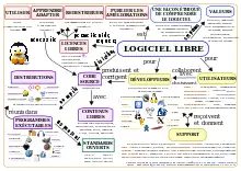 - l’open source : le logiciel libre, selon son initiateur, est un mouvement social[4] qui repose sur les principes de Liberté, Égalité, Fraternité[5] ; l’open source quant à lui, décrit pour la première fois dans La Cathédrale et le Bazar, s'attache aux avantages d'une méthode de développement au travers de la réutilisation du code source.