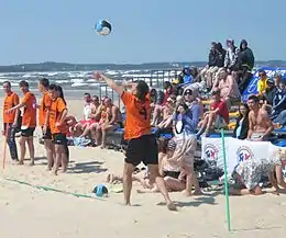 La loi 14 du beach soccer fait partie des lois régissant le beach soccer, maintenues par l'International Football Association Board (IFAB). La loi 14 se rapporte au rentrée en touche.