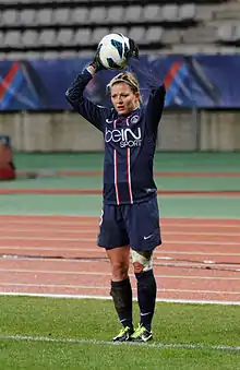 - avoir, au moins partiellement, les deux pieds à l'extérieur de terrain ou sur la ligne de touche (sans décoller les pieds du terrain),