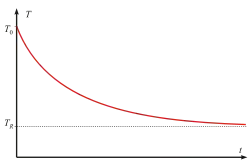 On peut dériver cette loi d'après une décroissance exponentielle. Si est la température du corps, elle vérifie l'équation différentielle :
