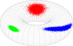 La loi de von Mises bivariée est une loi de probabilité définie sur un tore, plongé dans . La forme générale de la fonction de densité d'une distribution de von Mises bivariée pour des angles est donnée par :
