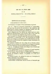 - Loi du 15 juin 1896 sur les règlements d’atelier, M.B., 25 juin 1896, art. 1.