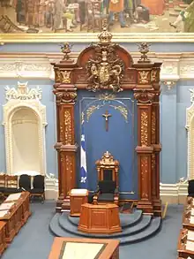 Au cours de la décennie des années 2000, le Québec fut touché par divers débats portant sur la place de la religion dans la société. Des événements tels que le jugement de la Cour suprême du Canada autorisant le port du kirpan —un poignard sikh — dans les écoles, l'installation de vitres givrées au YMCA d'Outremont, puis l'adoption d'un code de vie par la municipalité d'Hérouxville marquèrent l'actualité[36]. Instituée le par le premier ministre Jean Charest pour étudier l'enjeu des accommodements raisonnables[37], la Commission Bouchard-Taylor a proposé dans son rapport dévoilé le d'inscrire les principes d'interculturalisme[38] et de laïcité ouverte[39] dans la loi et d'interdire le port de symboles religieux aux agents de l'État en position d'autorité, tels que les policiers, les gardiens de prison et les juges[36]. Les deux commissaires proposèrent également le retrait du crucifix installé au-dessus du trône du président de l'Assemblée nationale du Québec[36], ce que les parlementaires refusèrent à l'unanimité à l'époque[40]'[41].