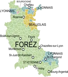 Après la disparition de l'Empire romain d'Occident, le Forez, lié au Lyonnais et au Beaujolais, faisait partie du royaume Burgonde, puis de Royaume de Bourgogne. Un comté de Forez se créé par division du comté de Lyon lors du Permutatio (1173). Au XVIe siècle, le Forez entre dans le domaine royal puis intègre la Généralité de Lyon.