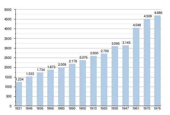 - Sources : INS, Rem. : 1831 jusqu'en 1970 = recensements, 1976 = nombre d'habitants au 31 décembre[3].