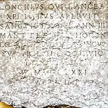 Son nom, Longinus, figure sur la fresque que le pape Zacharie (741-752) fit exécuter dans l'église Sainte-Marie-Antique, à Rome. C'est l'une des plus anciennes représentations connues de la Crucifixion.