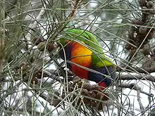 Le Loriquet à tête bleue (Trichoglossus haematodus) est une espèce d'oiseaux, l'espèce la plus bruyante et la plus colorée du genre Trichoglossus[1]. Les oiseaux de cette espèce sont dotés d'une langue en forme de pinceau pour aspirer le nectar des fleurs.