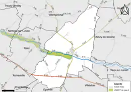 Parallèlement, L'Institut Paris Région, agence d'urbanisme de la région Île-de-France, a mis en place un inventaire numérique de l'occupation du sol de l'Île-de-France, dénommé le MOS (Mode d'occupation du sol), actualisé régulièrement depuis sa première édition en 1982. Réalisé à partir de photos aériennes, le Mos distingue les espaces naturels, agricoles et forestiers mais aussi les espaces urbains (habitat, infrastructures, équipements, activités économiques, etc.) selon une classification pouvant aller jusqu'à 81 postes, différente de celle de Corine Land Cover[25],[26],[Carte 4]. L'Institut met également à disposition des outils permettant de visualiser par photo aérienne l'évolution de l'occupation des sols de la commune entre 1949 et 2018[Carte 5].