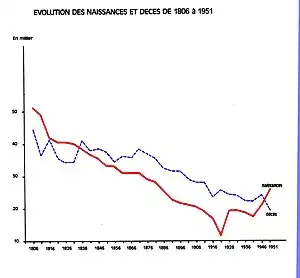 La réduction du nombre des naissances est la principale cause du dépeuplement du Lot-et-Garonne. En un siècle, de 1846 à 1946, il a perdu plus de 130 000 personnes du fait de décès trop nombreux par rapport aux naissances, déficit en partie compensé, seulement, par un apport migratoire de plus de 50 000 individus, principalement entre les deux guerres et durant la Seconde Guerre mondiale en raison de l’accueil de réfugiés. C’est entre 1901 et 1921 que le recul de la population est le plus prononcé en raison d’un déficit naturel qui frôle 40 000 individus (déficit des naissances et pertes humaines pendant la première guerre mondiale) alors que les apports migratoires sont négligeables.