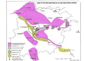 La vigne couvre plus de 8 000 ha, livre près de 400 000 hl ce qui représente près de 5 % du chiffre d’affaires de l’agriculture départementale, soit sensiblement la même chose que le blé. Grâce aux efforts des viticulteurs locaux la vigne et le vin entrent dans une production de qualité bénéficiant du label AOC (Appellation d’origine contrôlée). Trois zones dominent tant pour les superficies que pour les quantités : le pays de Duras, les côtes du Marmandais (Beaupuy et Cocumont) et, surtout, le vignoble de Buzet. Toutes ont en commun d’être animées par des caves coopératives qui ont su faire progresser la qualité, ouvrir de nouveaux débouchés, mais sont soumises à une vive concurrence. Ainsi, celles de Cocumont et Marmande ont dû fusionner et opérer des restructurations douloureuses. Dernières arrivées en tant qu'AOC (depuis le ) : les côtes de Brulhois, cette appellation étant partagée avec le Tarn-et-Garonne et une petite partie du Gers.
