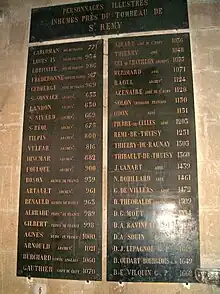 - Prosper Tarbé, Les sépultures de l'église Saint-Remi de Reims, 1842.