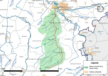 | Sources : SANDRE:« Fiche cours d'eau (K5444000) », Géoportail | |