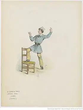 - 1836 : Le Gamin de Paris, comédie-vaudeville en deux actes, de Jean-François Bayard avec Hugues Bouffé, au théâtre du Gymnase ()[49].