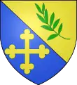 Tranché : d'or au rameau d'olivier de sinople, et d'azur à la croix tréflée d'or[4].