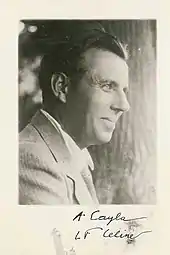 Louis Ferdinand Destouches, dit Louis-Ferdinand Céline , né le à Courbevoie[1] et mort le à Meudon, connu sous son nom de plume généralement abrégé en Céline[2], est un écrivain, médecin et collaborateur français. Il est notamment célèbre pour Voyage au bout de la nuit, publié en 1932 et récompensé par le prix Renaudot la même année.